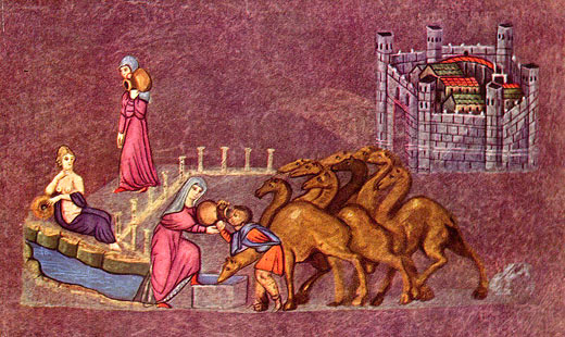 Wiener Genesis, Miniatur: Rebekka und Eliezar